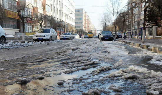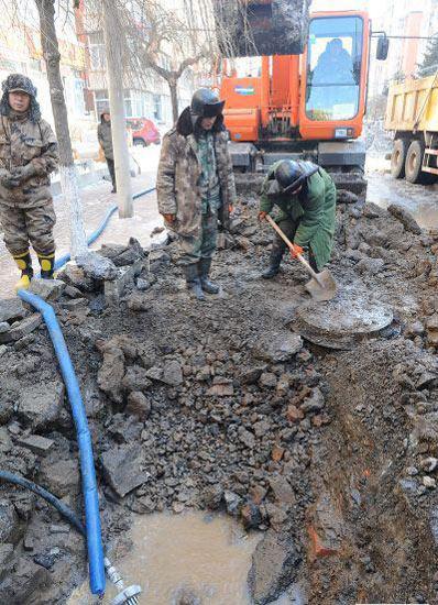“在岳阳街与至善路交会往东,马路边有*处自来水管漏水,水量非常大,已经快流到树勋街口,路边有多辆车都冻上了。”1月31日清晨长春市南关区环卫工人突然发现管辖的街道已经成了冰天雪地,经查明供水管网的漏损点在岳阳街与至善路交会处东50米处,此处漏水管道为直径150毫米的次供水管道。抢修人员在漏水现场用挖掘机械挖出*个长约2米、宽约1米、深约2米的深坑,查明供水管道的漏水点。随后,供水抢修人员将“哈夫节”(*种管路抢修装置,由两个半圆组成,套在*起能组成*个箍)用螺丝拧紧后,整个管道抢修工作在两个小时内结束,随即开始回填沙石平整路面。与此同时,负责相关地段的南关环卫工人开始清理积冰,据负责人表示整条路段清理干净至少需要两到三天,他们会尽快恢复路面畅通。